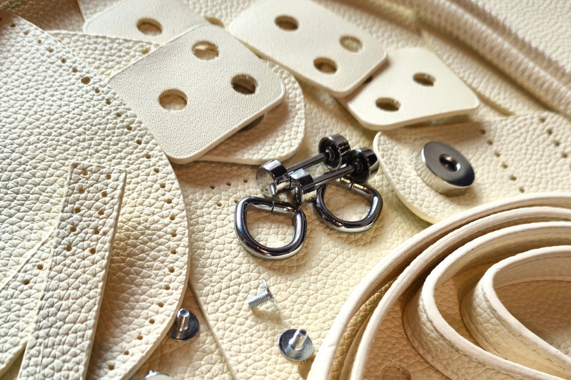 Each kit includes everything you need to complete your handbag. Pre cut materials, sewing tools, hardware and finishing details and clear, easy to follow instructions. No additional tools or supplies are needed.